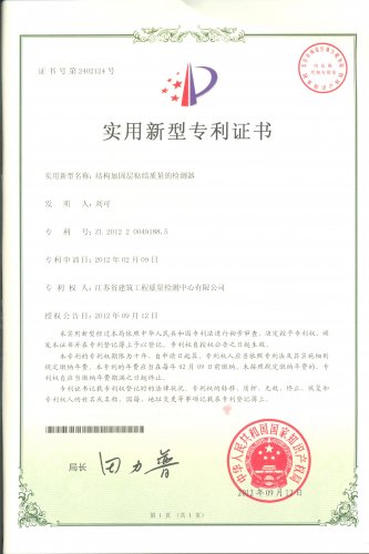 | 公司自主知识产权“结构加固层粘结质量的检测器”取得专利 |